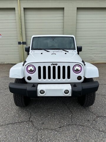 Sharp white 4-door Jeep Wrangler Unlimited Sahara that turns heads everywhere it goes. Clean inside and out with tinted windows, and upgraded halo headlights.